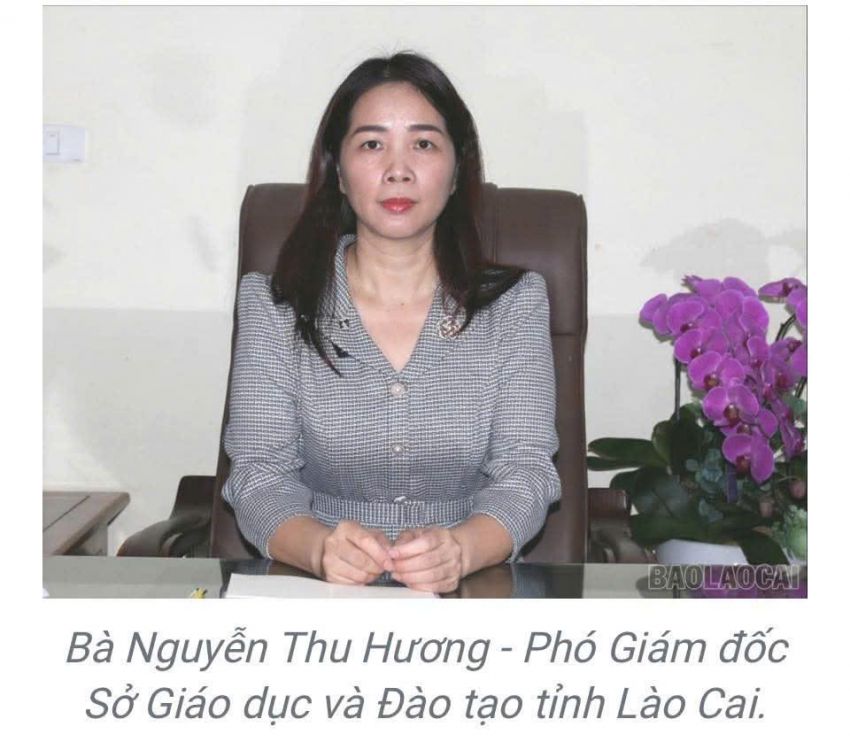 Bà Nguyễn Thu Hương-Phó giám đốc Sở giáo dục và Đào tạo tỉnh Lào Cai trả lời phóng viên về việc sát nhập trường.